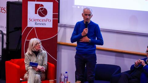 C'est sur ce thème que Thierry Thuillier, directeur général adjoint de l'Information du Groupe TF1, Christopher Baldelli, Président de Public Sénat et président d'un groupe de travail des Etats Généraux de l'Information, Gilles Bouleau, présentateur du JT de 20H de TF1, Samira El Gadir, journaliste et responsable de la cellule des Vérificateurs TF1-LCI et Philippe Boissonnat, rédacteur en chef du quotidien Ouest France ont échangé pendant près de deux heures avec plus de 300 lycéens de la région Bretagne, des étudiants de Sciences Po Rennes et des lecteurs du quotidien Ouest France au sein de l'amphi Erasme de Sciences Po Rennes.