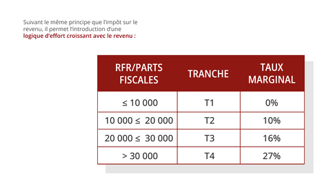 - T3 : 2 000 € restants (22 000 – 20 000) à 16 % (taux marginal) ► montant = 320 €