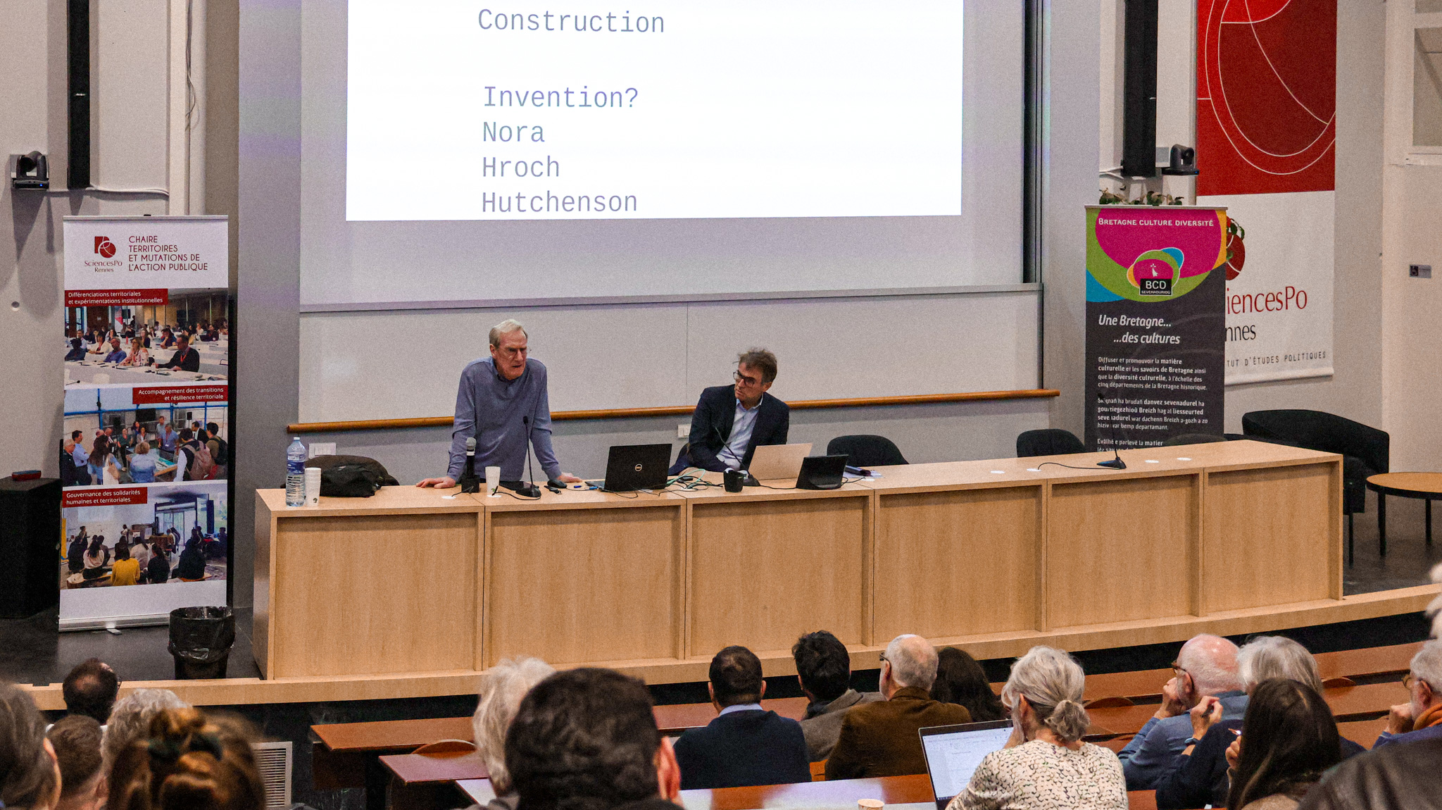 La conférence a été suivie d’une table-ronde avec Aziliz Gouez, Conseillère régionale de Bretagne et Vice-Présidente de Nantes métropole, ancienne plume du Président de la République d’Irlande; Gaël Hily, chargé de la chaire Territoires et mutations de l’action publique (TMAP) de Sciences Po Rennes et docteur en littérature celtique médiévale. Celle-ci était animée par Tudi Kernalegenn de Bretagne Culture Diversité et responsable du master Culture et transitions de Sciences Po Rennes.