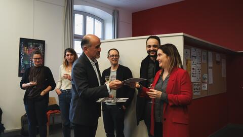 Le 1er février dernier, M. Pablo Diaz, le directeur de Sciences Po Rennes, a remis leurs diplômes aux candidats de la promotion VAE – MOP 2022-2023. Ces derniers ont saisi cette opportunité pour remercier l’équipe pédagogique composée de Mme Elsa Delaunay, Mme Nolwenn Pelé, Mme Pauline de Beauregard, M. Denis Moalic, M. Gilles Beaume et de Mme Habiba Nguyen. Les diplômés ont également salué la démarche de Sciences Po Rennes de proposer un parcours si enrichissant en VAE.