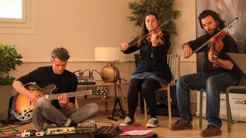 - Une approche artistique, avec la lecture par des résidents et des professionnels de L’Envolée, de textes tirés du Manifeste pour notre participation et du Book, accompagnée par Nahuel Mathieu à l’alto, Lina Noui au violon et Yann Féry à la guitare.