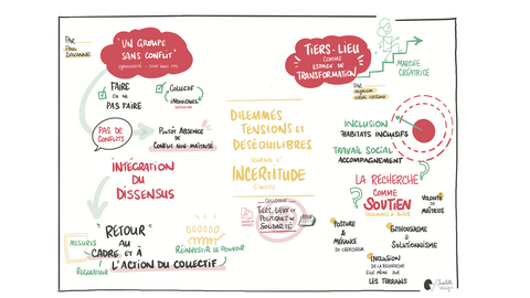 La facilitatrice graphique Charlotte Velly a assisté à l'ensemble des conférences du colloque. Elle a synthétisé en direct les échanges auxquels elle a assisté sur 9 planches visuelles afin de valoriser et garder une trace de l’événement. Cette manière de présenter autrement les résultats de la recherche permet de capturer les discussions et les idées échangées lors du colloque. En utilisant des graphiques, des schémas et des illustrations, Charlotte Velly rend les concepts abordés plus accessibles et compréhensibles pour le grand public.