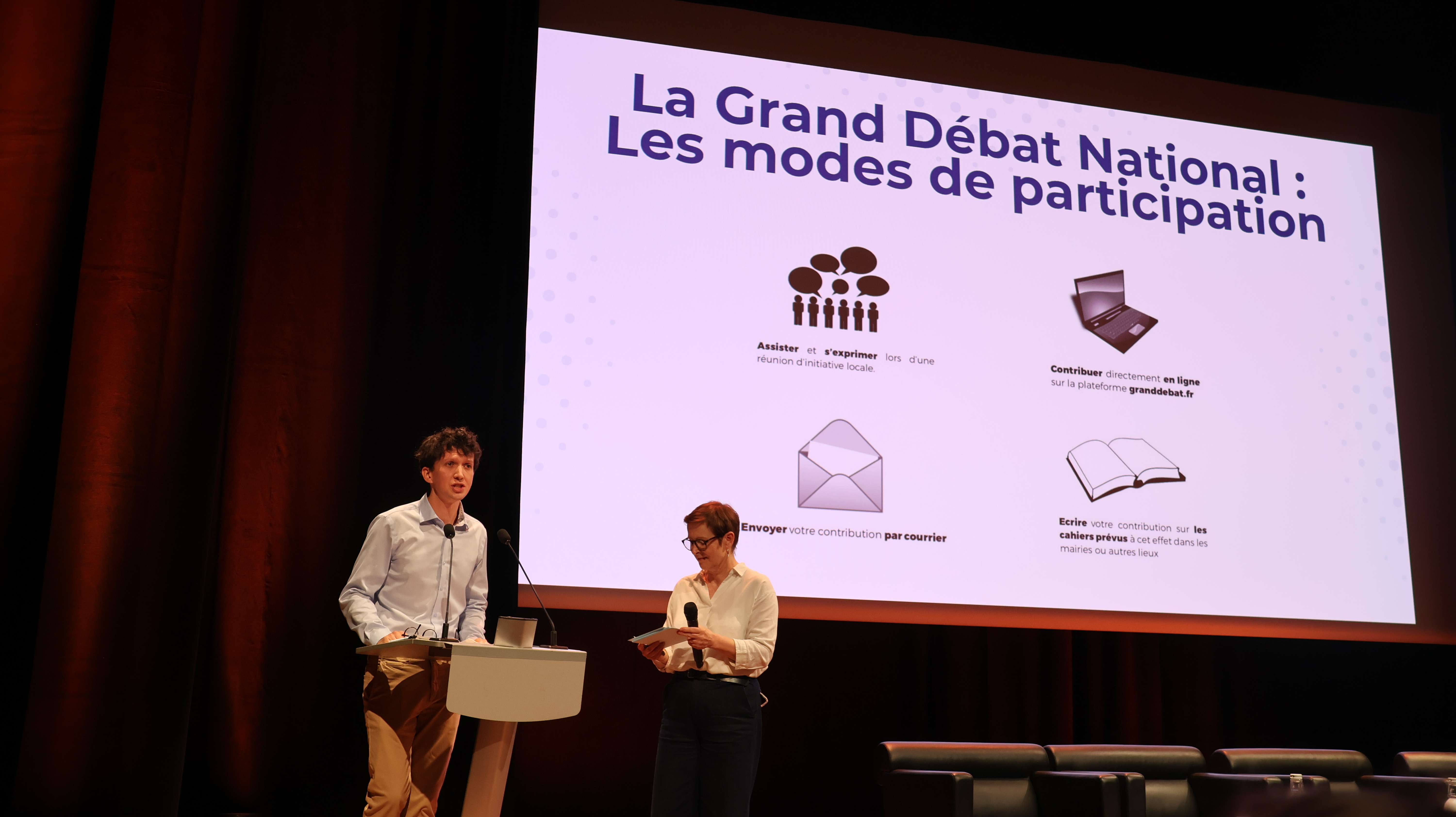 Après la diffusion d’une série de doléances retranscrites à l’orale, Pierre Le Moignic - étudiant en master politiques publiques, parcours concertation et territoires en transition (CTT) et alternant au sein du cabinet du Président de la Région Bretagne - a présenté les principaux axes de son mémoire intitulé “Entre colère et réinvention : les doléances bretonnes comme miroir d’une démocratie en crise”, en présence d’Anne Chevrel, Responsable du parcours CTT.