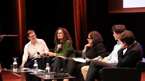 À l’issue de sa présentation, Pierre Le Moignic a été rejoint par Romain Pasquier, Directeur de recherche au CNRS et titulaire de la Chaire "Territoires et mutations de l'action publique" de Sciences Po Rennes; Christel Marteel,journaliste et cheffe du service Bretagne à Ouest-France et Illaria Casillo, Vice-présidente de la Commission nationale du débat public (CNDP), afin de soumettre à la discussion les résultats. Lors de cette table ronde animée par Anne Chevrel, les protagonistes ont, entre autres, évoqués la défiance des Gilets jaunes vis-à-vis des journalistes, l’impact des réseaux sociaux sur le mouvement, la démocratie participative et « la crise institutionnelle » que traverse la France.